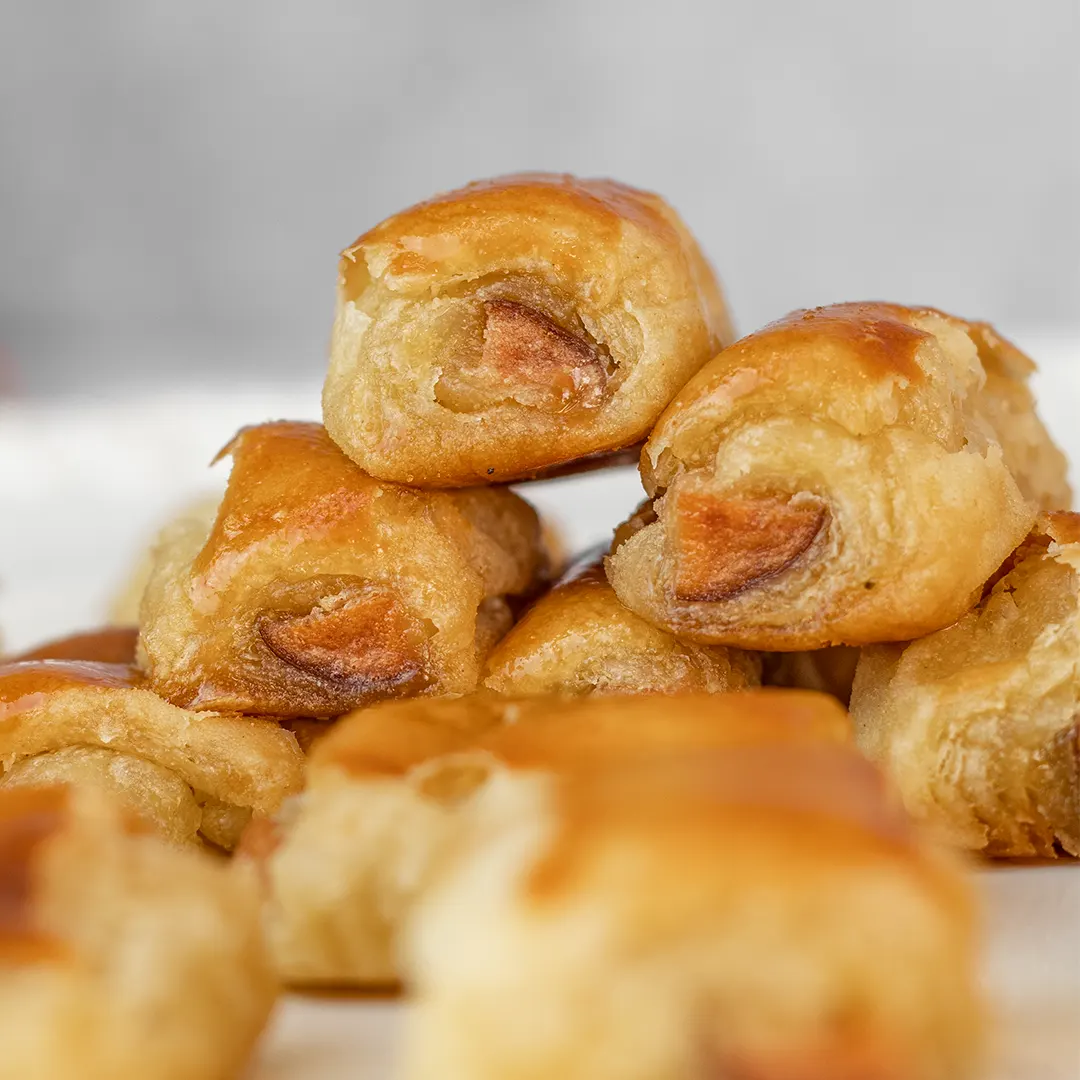 Clásico y sabroso, nuestro enrollado de hotdog envuelto en masa de hojaldre tiene todo el sabor de la tradición. ¡Un toque perfecto para tus invitados! No incluye salsas ni complementos.